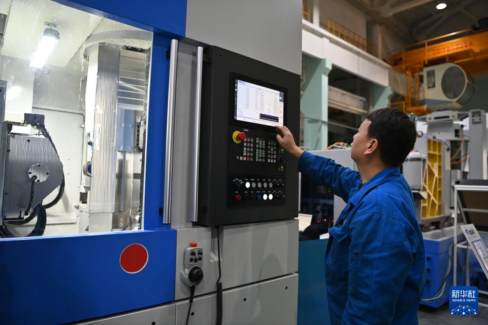 10月28日,在秦川机床工具集团股份公司总装车间,工作人员在调试机床。新华社记者 肖潇 摄