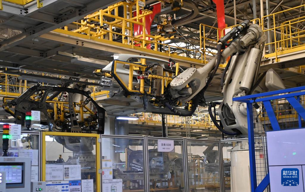 10月27日,在西安吉利生产基地,工业机器人在生产线上工作。新华社记者 肖潇 摄