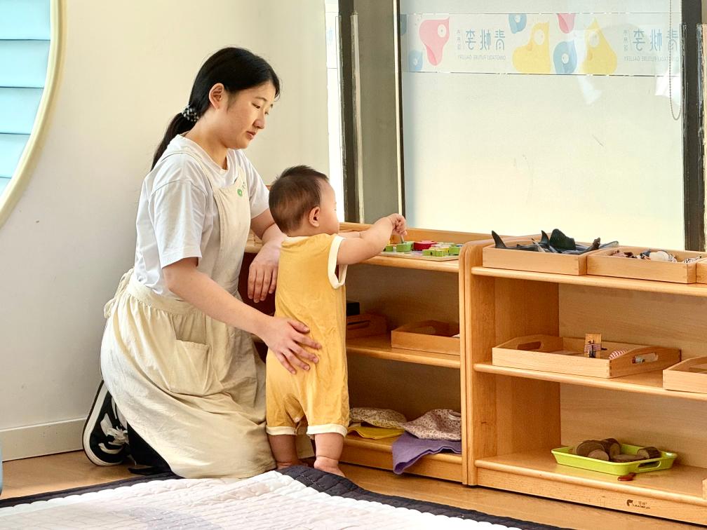 随着双职工家庭增多、育儿观念不断更新,越来越多中国家长选择将孩子送入专业托育机构。青桃李未来馆园长助理杨惠媛介绍,该机构以全日托为主,根据孩子月龄设计个性化养育方案。她说,随着家庭结构变化,不少家长在照护上面临精力不足的困境,专业托育的出现,让他们能更安心地投入工作,也让孩子得到更科学、细致的照护。