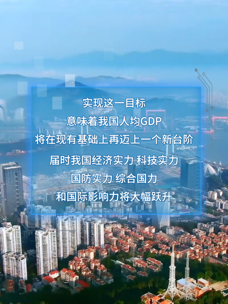10月28日发布的《中共中央关于制定国民经济和社会发展第十五个五年规划的建议》提出:到2035年“人均国内生产总值达到中等发达国家水平”。