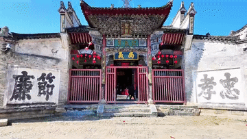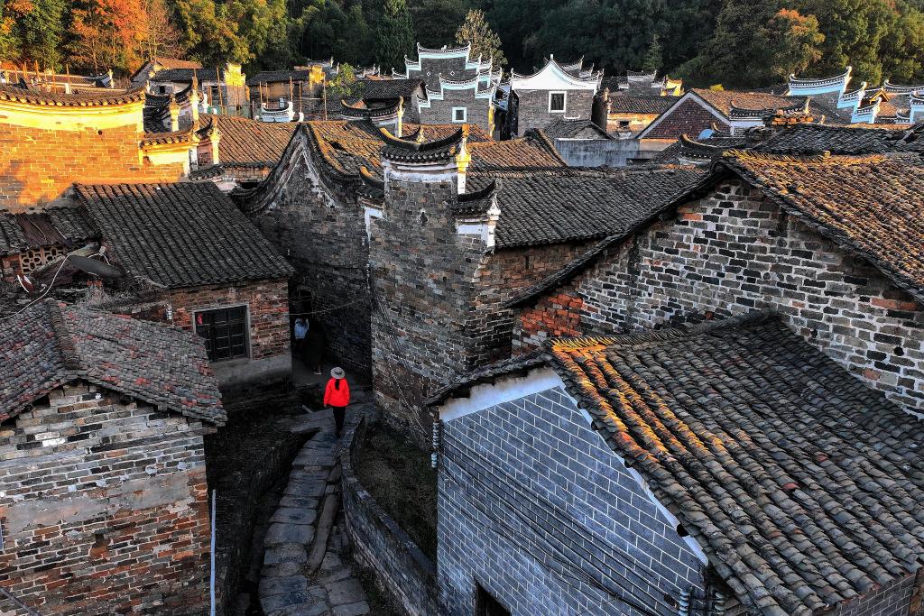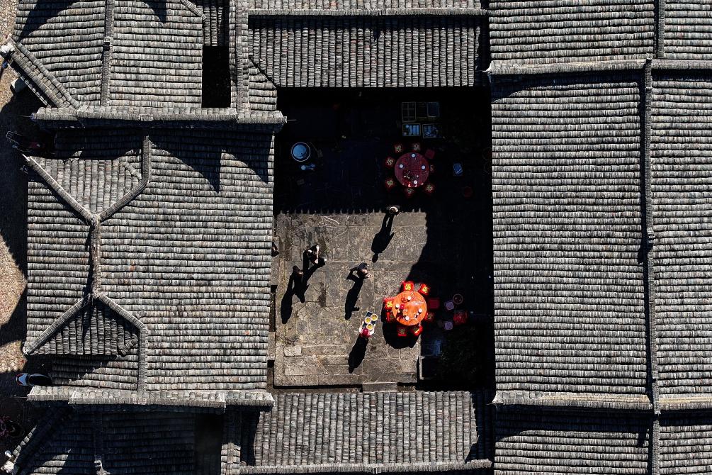 11月24日,人们在郴州汝城县金山村一处古祠堂内(无人机照片)。