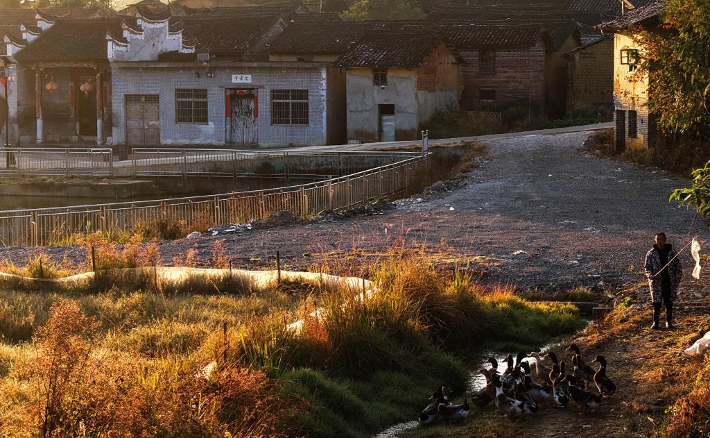 11月24日,郴州汝城县金山村村民在放鸭子。
