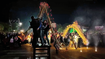 郴州汝城县居民舞动已点燃的“香火龙”(资料照片)。