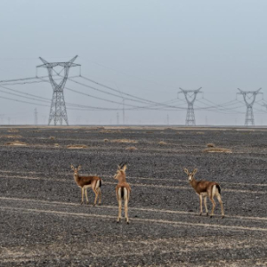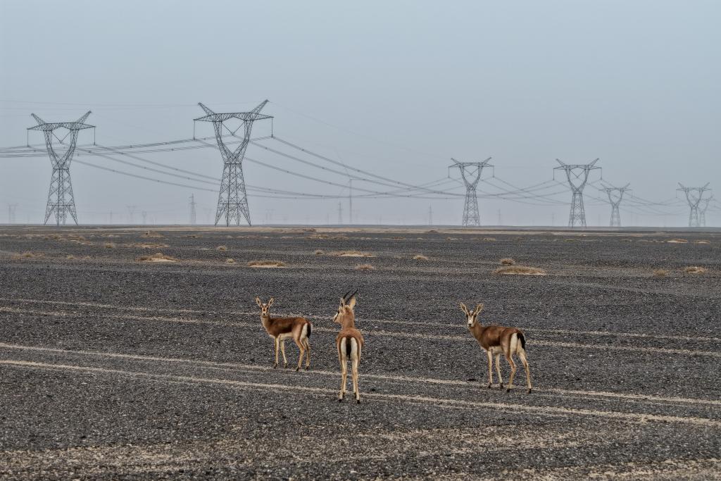 记者离开瓜州时,恰逢一群鹅喉羚在电网铁塔下活动,绘就出一幅野生动物与风电设施和谐共处的生态画卷,也见证着这片戈壁荒漠向绿色能源高地的华丽转变。