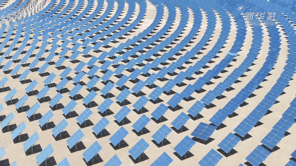 在甘肃省酒泉市金塔县的一座光热电站,2.5万余面定日镜形成一个巨大的镜面场。当戈壁滩上迎来穿越地球大气层的第一缕阳光,“超级镜子”们组成的银色矩阵早已严阵以待,它们调整方位和角度反射太阳能量,如同训练有素的“向日葵军团”,构建起光能向电能转化的通道。