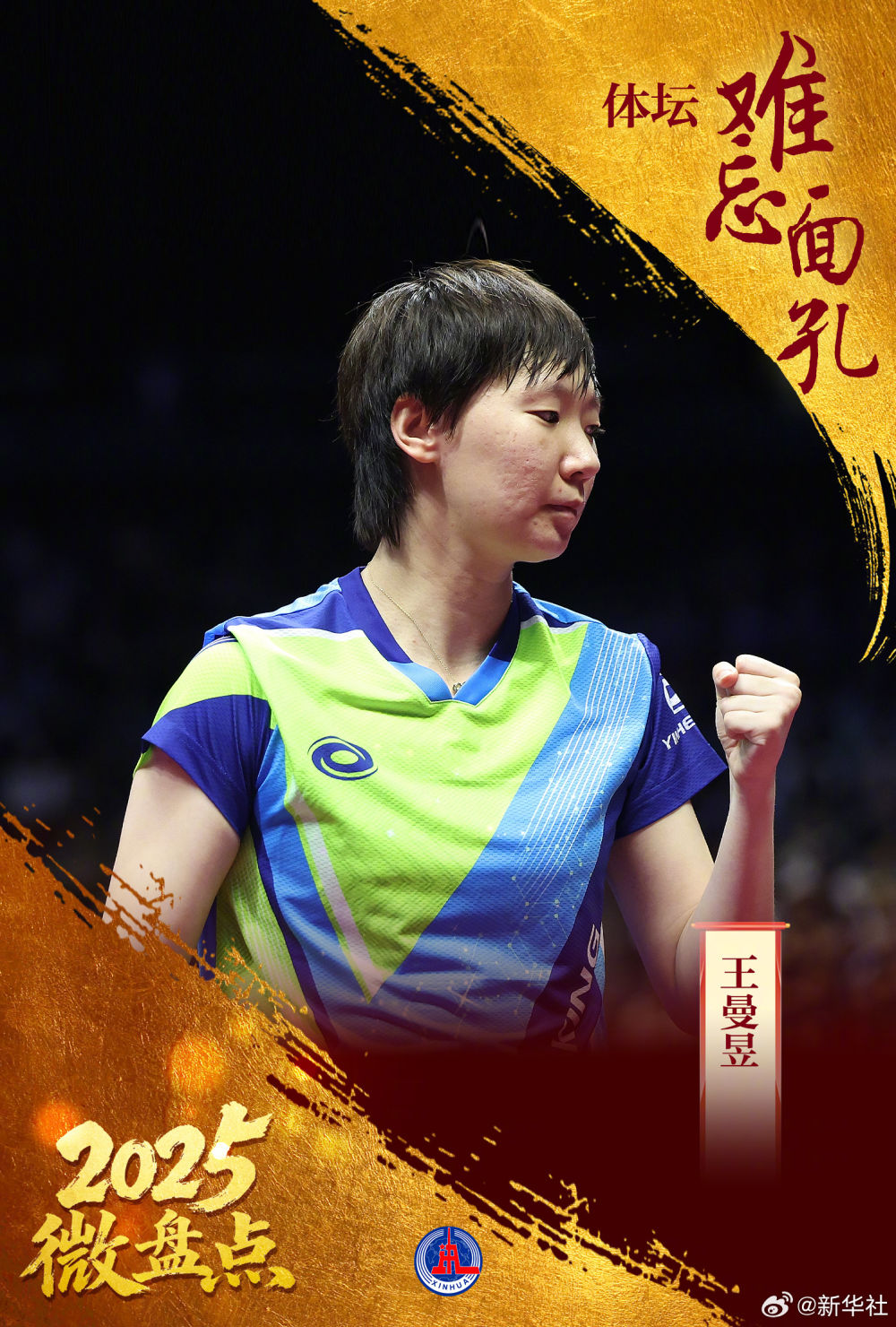 【转发!2025体坛难忘面孔】王楚钦、孙颖莎多哈世乒赛混双摘金,樊振东、王曼昱全运会男单女单夺冠,林孝埈解锁亚冬会金牌,全红婵伤愈复出首战夺金,苏翊鸣单板滑雪大跳台世界杯总冠军,汪顺全运会金牌总数达19枚,巩立姣全运会五连冠,苏炳添传奇永不落幕……2025年,哪张体坛面孔让你难忘?