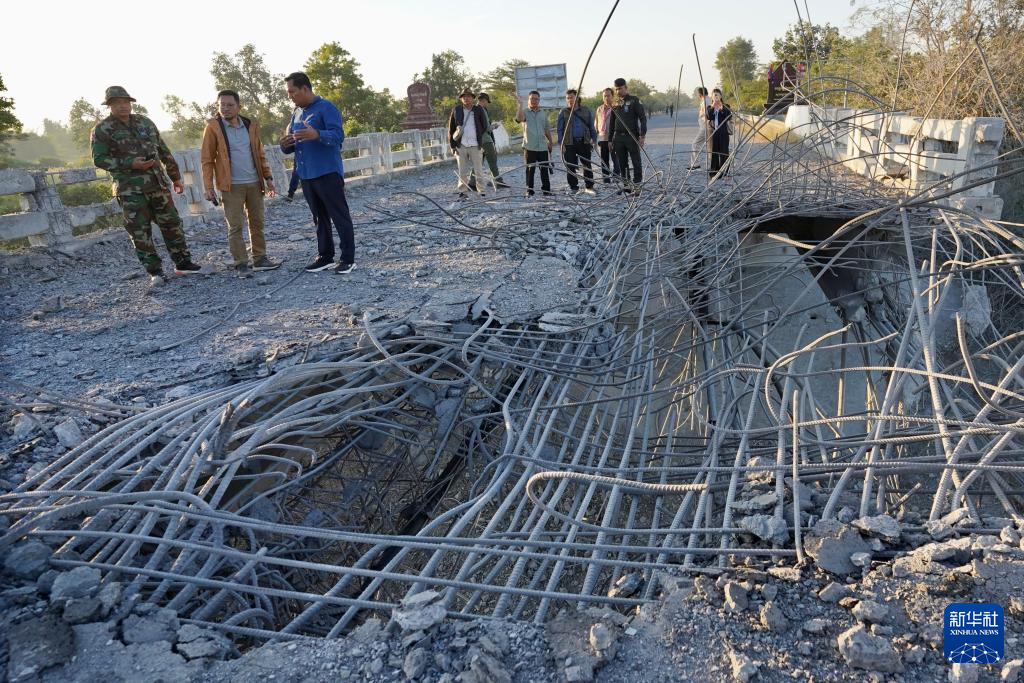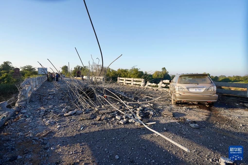 这是12月20日在柬埔寨奥多棉吉省与暹粒省交界处拍摄的被轰炸的桥梁。新华社/柬新社