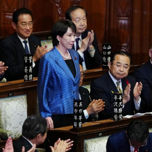 首先是靖国神社问题。高市此前多次参拜靖国神社,在自民党总裁竞选期间选择回避胜选后是否参拜靖国神社这一敏感议题。面对右翼势力质疑,她解释称“不想因此引发外交问题”,言下之意是有心参拜但又有所顾忌。媒体认为,一旦高市参拜,将进一步引发亚洲邻国反对。