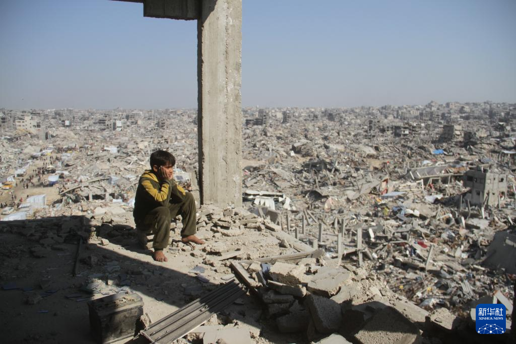 1月29日,在加沙地带杰巴利耶难民营,一名巴勒斯坦少年望向废墟。新华社发(阿卜杜勒拉赫曼·萨拉马摄)
