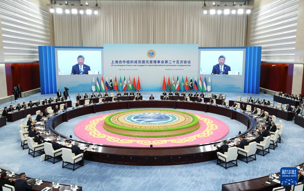9月1日上午,上海合作组织成员国元首理事会第二十五次会议在天津梅江会展中心举行。中国国家主席习近平主持会议并发表题为《牢记初心使命 开创美好未来》的重要讲话。新华社记者 丁海涛 摄