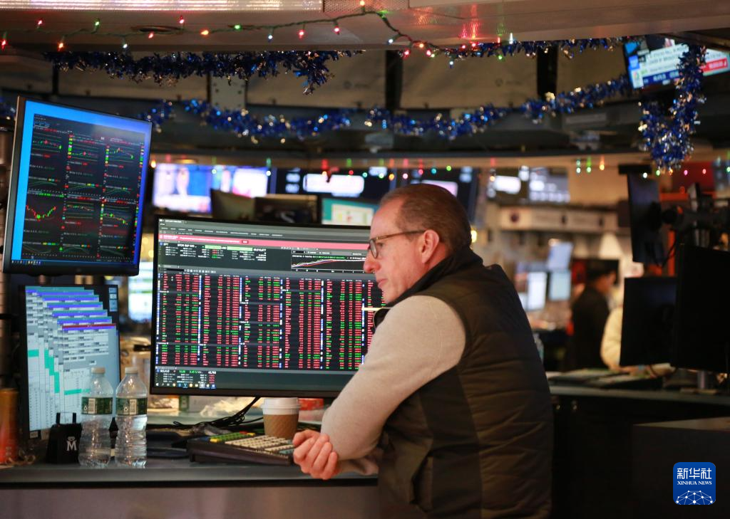 12月12日,一名交易员在美国纽约证券交易所交易大厅内工作。纽约股市三大股指当日下跌。新华社记者 刘亚南 摄