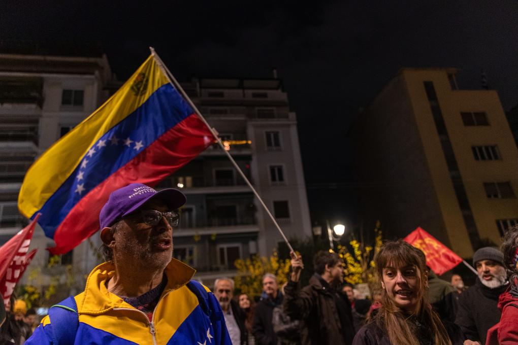 1月3日,在希腊首都雅典,当地民众在美国驻希腊大使馆外参加抗议活动。