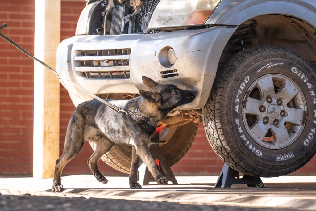 训导员带领一只昆明犬进行搜爆训练(2025年12月29日摄)。