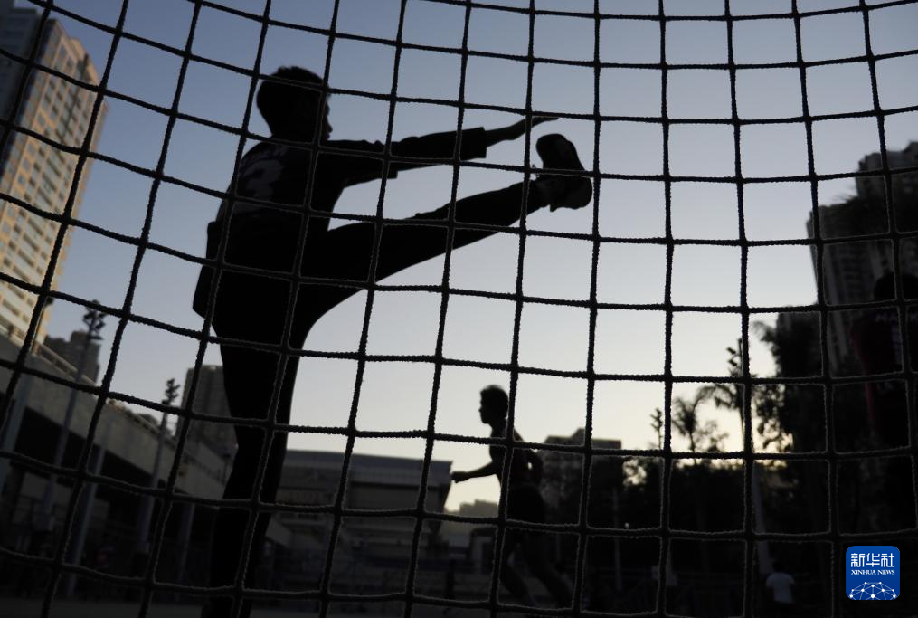 在香港新蒲岗彩虹道150号的露天游乐场,香港一支中学手球队的学生球员在训练中(2025年12月17日摄)。新华社发(王申摄)