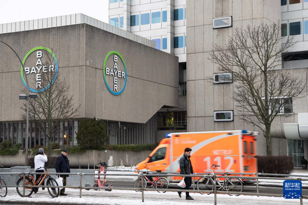 1月6日,在德国首都柏林,一辆救护车驶过拜耳的一处办公区。新华社记者 张豪夫 摄
