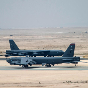 在卡塔尔乌代德空军基地的美国空军B-52轰炸机。新华社/美联