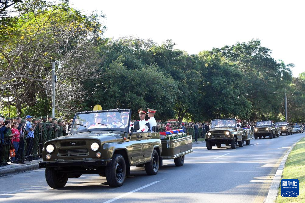 1月15日,在古巴首都哈瓦那,载有在美国袭击委内瑞拉事件中牺牲的古巴人员灵柩的车队驶向革命武装力量部总部。新华社发(华金·埃尔南德斯摄)