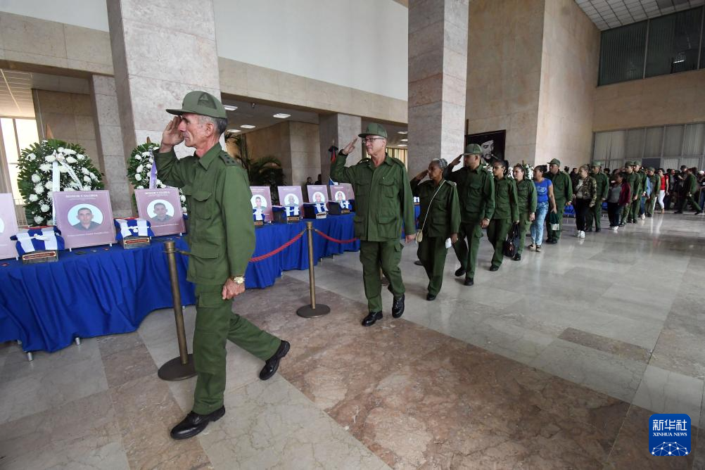 1月15日,在古巴首都哈瓦那,古巴军人向在美国袭击委内瑞拉事件中牺牲的32名古巴人员敬礼并致哀。新华社发(华金·埃尔南德斯摄)