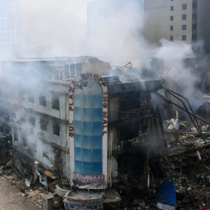 信德省首席部长赛义德·穆拉德·阿里·沙阿在卡拉奇举行的新闻发布会上说,救援队已进入建筑物内进行搜寻。1名消防员在灭火过程中殉职。购物中心40%的建筑已经坍塌,其余部分也状况堪忧,整栋建筑或将被拆除。