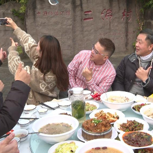 台湾同胞在重庆市合川区涞滩镇二佛村吃刨猪汤。(受访者供图)