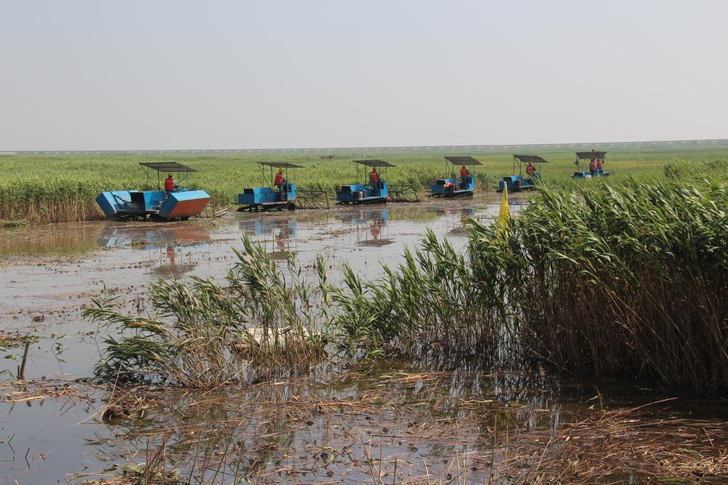 互花米草刈割场景(2016年7月4日摄,无人机照片)。