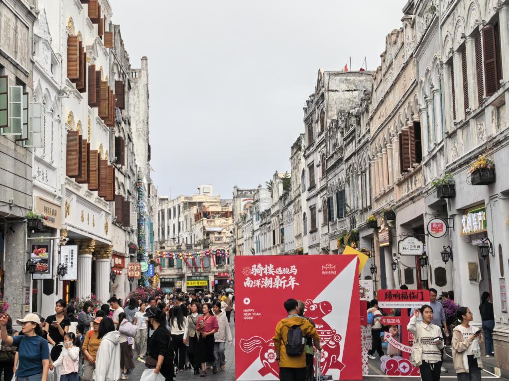 2026年2月5日,临近春节,海口骑楼老街迎来大量市民游客。新华社记者刘邓 摄
