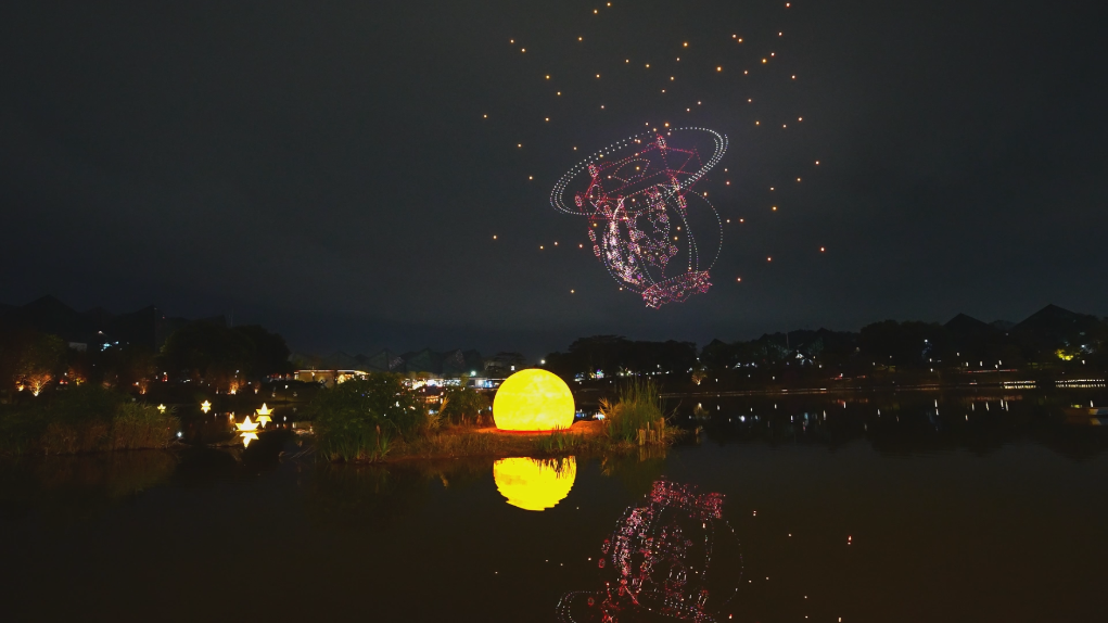 那次龙岗区的表演,约2800架无人机在夜色中勾勒出奔马、灯笼、龙岗地图等图案,湖面上,灯笼和孔明灯造型的无人机飘逸摆动,点点灯光与空中的图案相映成趣,为市民带来了一场科技感与氛围感拉满的视觉盛宴。