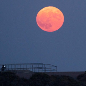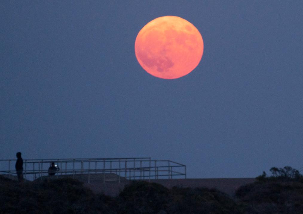 这是2023年8月30日在美国旧金山金门大桥附近拍摄的“超级月亮”。新华社发(李建国摄)