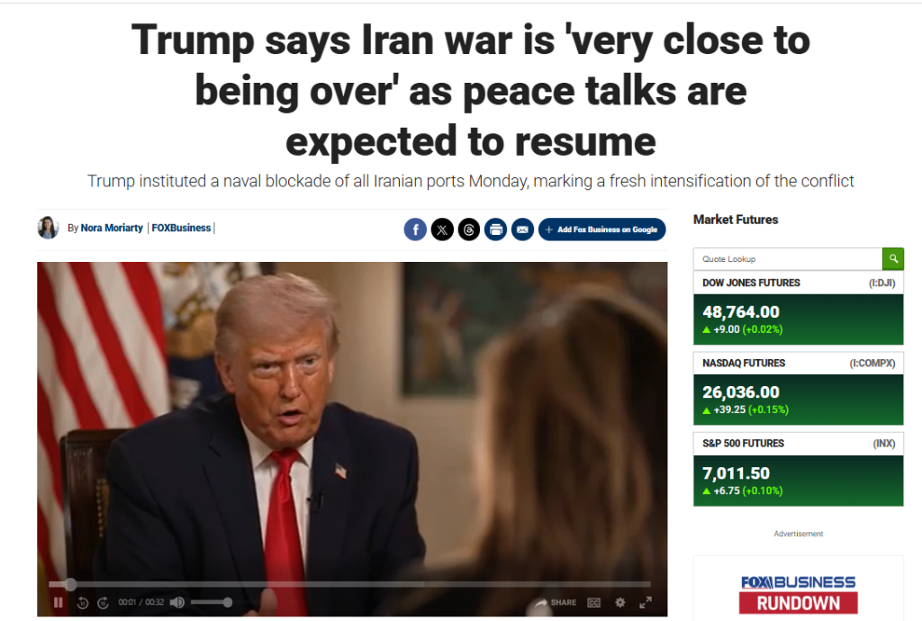美伊重启谈判之际 特朗普称伊朗战事已“接近结束”