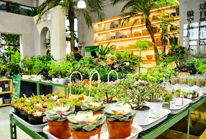 3月30日,游客在春风十里主题街区一花店内赏花。新华社发(康文魁 摄)