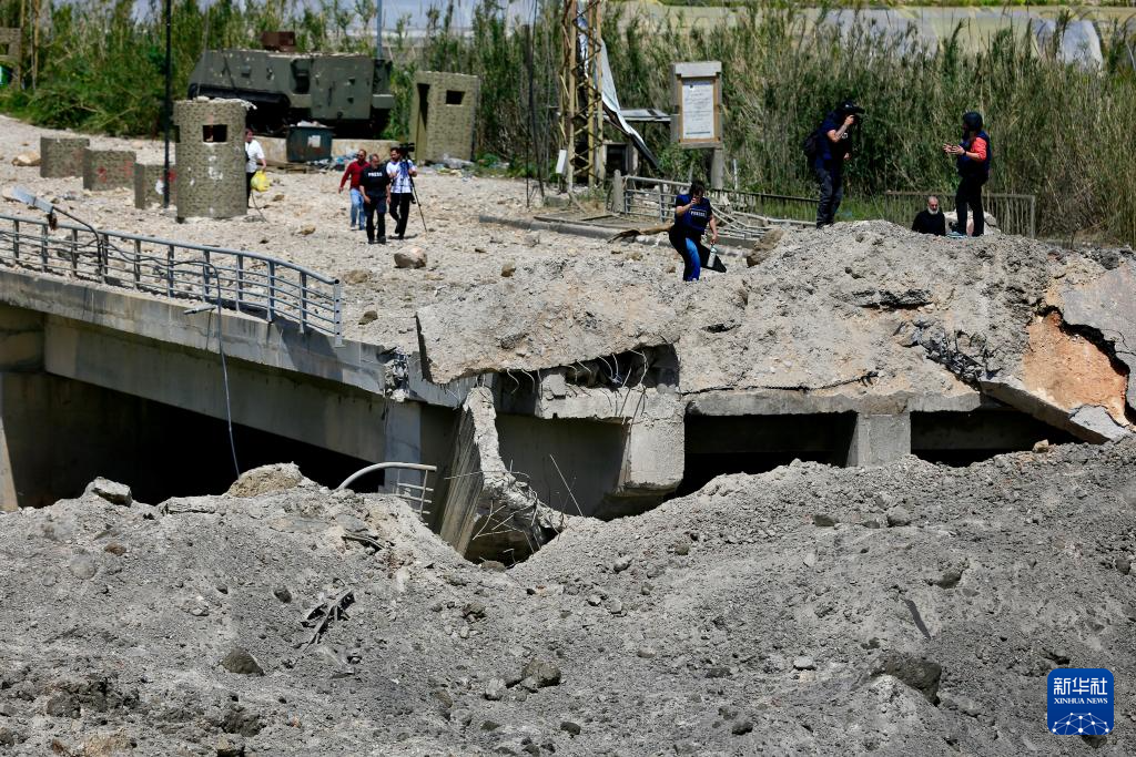 4月16日,人们查看遭以军空袭损毁的黎巴嫩加西米耶桥。新华社发(阿里·哈希绍摄)