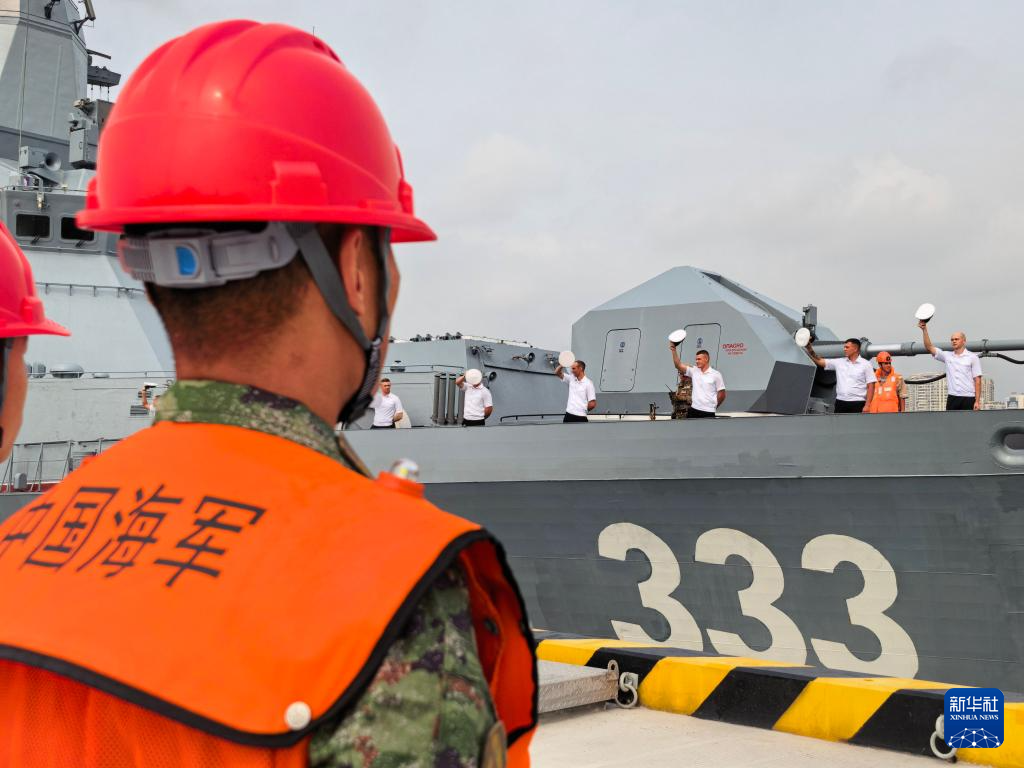 4月19日上午,俄罗斯海军舰艇编队结束为期5天的友好访问,驶离广东湛江某军港。这是俄罗斯海军舰艇编队准备离港。新华社发(李俊霖 摄)