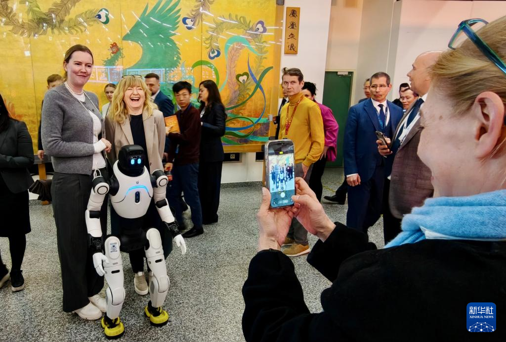 4月13日,在奥地利维也纳国际中心,人们在以“太和充满——在维也纳联合国遇见故宫”为主题的2026年维也纳联合国中文日系列活动上与机器人合影。 新华社发(王宙摄)