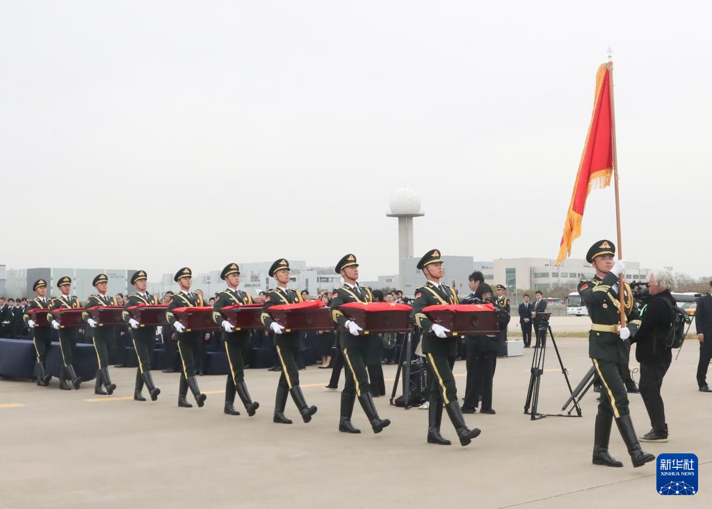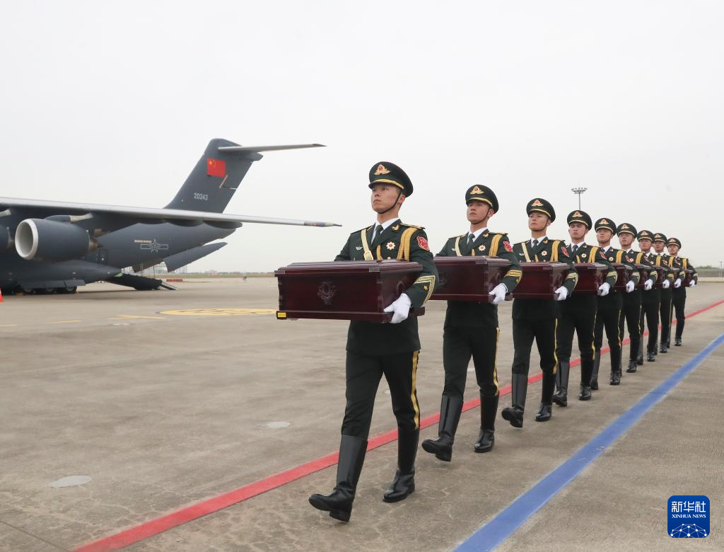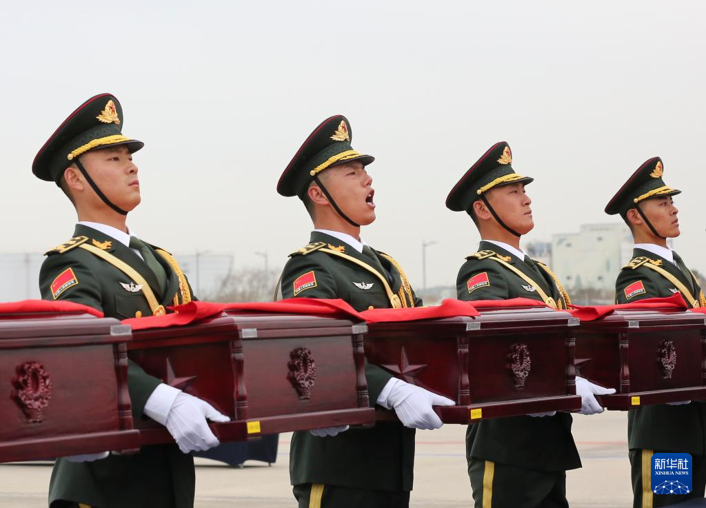 退役军人事务部、中央宣传部、中央对外联络部、中央网信办、外交部、国家发展改革委、财政部、中央军委政治工作部等军地有关部门组成的中方交接代表团组全体人员、中国驻韩国大使馆相关人员共同见证迎接志愿军烈士回家。