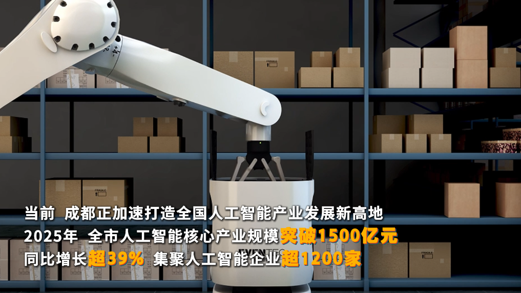 2025年6月起,成都常态化开展机器人与人工智能实景验证活动,组织41家企业68款前沿产品在文旅、消费、交通等多个场景开展实景验证,着力打通从“技术突破”到“产业应用”的转化通道。2025年,全市人工智能核心产业规模超1500亿元,同比增长超39%,集聚人工智能企业超1200家。