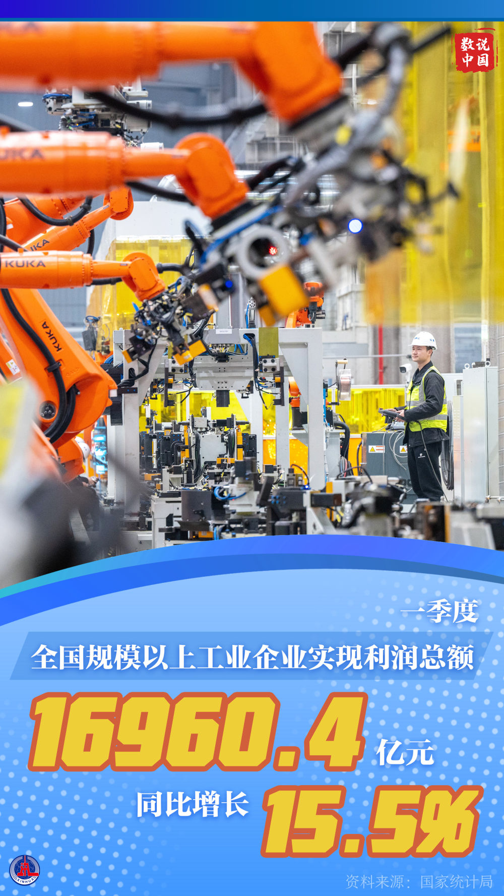 国家统计局4月27日发布数据显示,1至3月份,全国规模以上工业企业实现利润总额16960.4亿元,同比增长15.5%。