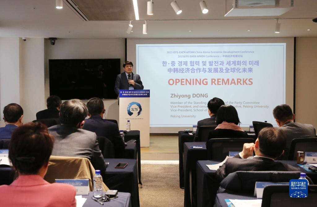 12月21日,北京大学副校长董志勇在韩国首尔举行的2023年中韩经济发展论坛开幕式上致辞。新华社记者 姚琪琳 摄