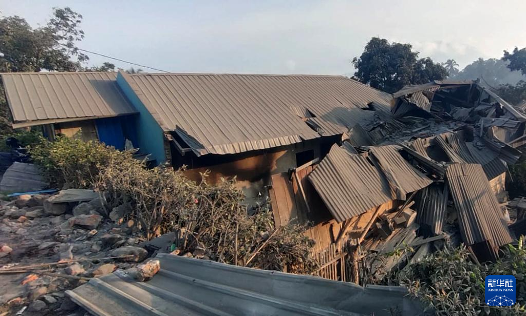 这是11月4日在印度尼西亚东努沙登加拉省东弗洛勒斯县勒沃托比火山附近拍摄的受损房屋。新华社发(印尼东弗洛勒斯县抗灾署供图)