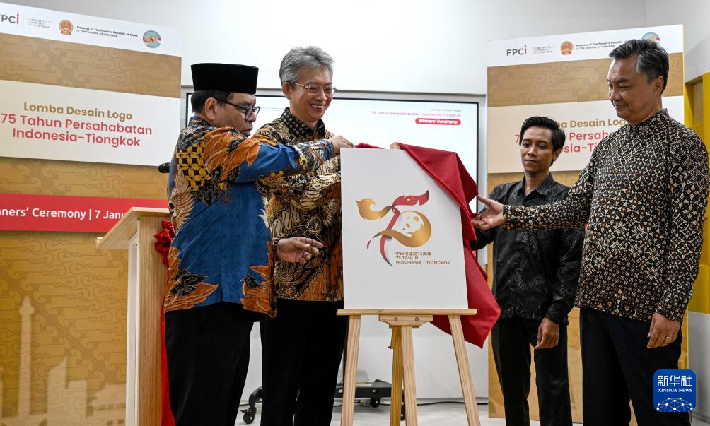 新华社雅加达1月7日电(记者陶方伟 叶平凡)中印尼建交75周年LOGO设计大赛7日在雅加达落幕,中国驻印尼大使王鲁彤、印尼驻华大使周浩黎共同出席活动,并为中印尼建交75周年官方纪念LOGO揭幕。