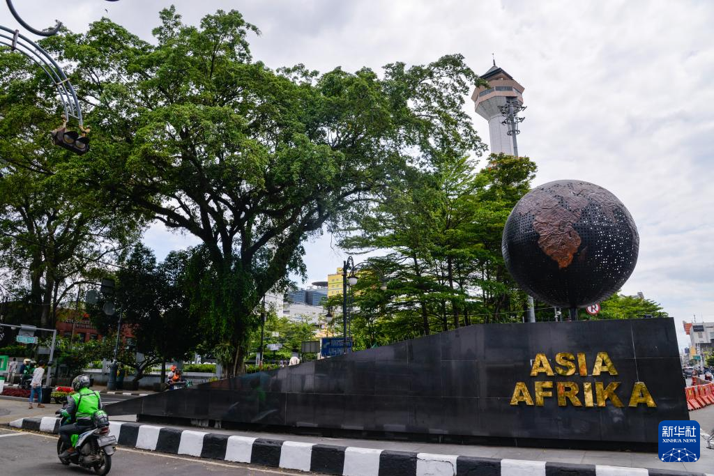 这是4月23日在印度尼西亚万隆拍摄的亚非团结纪念碑。