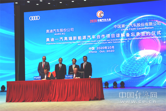 2020年10月13日,中国一汽与德国奥迪在长春签署谅解备忘录