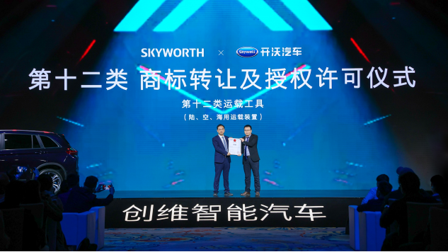 4月27日,开沃新能源汽车集团在北京举办创维汽车品牌见面会,正式发布“创维汽车”品牌。开沃新能源汽车集团自成立以来,在新能源汽车领域深耕和布局十来年,已经形成了完备的研发、制造以及供应链体系。2021年3月26日,开沃新能源汽车集团与创维集团签订商标转让协议,开沃新能源汽车集团正式获得创维集团对根据世界知识产权组织通过其地方法律在中国适用的尼斯分类的第12类 (运载工具;陆、空、海用运载装置) 上带有“创维”和/或“Skyworth”商标的11个商标的转让。商标转让完成后,“创维汽车”成为开沃新能源汽车集团旗下的智能汽车品牌。