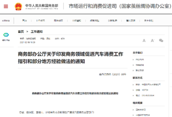 汽车是消费市场的“顶梁柱”。党中央、国务院高度重视,党的十九届五中全会明确提出要推动汽车由购买管理向使用管理转变,稳定和扩大汽车消费。为深入贯彻落实党中央、国务院决策部署,充分用好用足已有汽车消费政策,全链条发展汽车流通、促进汽车消费,满足人民群众汽车消费需求,商务部梳理了当前商务领域促进汽车消费的主要工作任务和一些地方好的经验做法,形成了《商务领域促进汽车消费工作指引》和《地方促进汽车消费经验做法》。