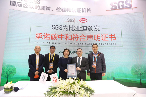 比亚迪获颁国内首张SGS承诺碳中和符合声明证书