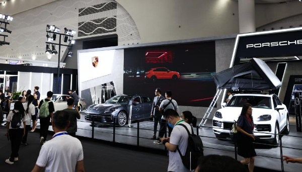 4月14日,人们在第四届中国国际消费品博览会上参观德国品牌保时捷展台。新华社记者杨冠宇摄