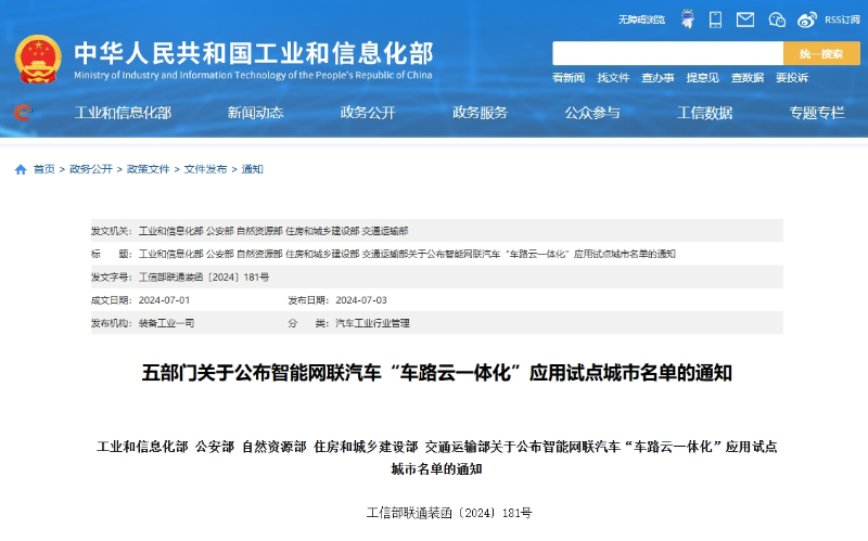 据工业和信息化部网站消息,近日,工业和信息化部、公安部、自然资源部、住房和城乡建设部、交通运输部等五部门联合公布智能网联汽车“车路云一体化”应用试点城市名单,20个城市(联合体)榜上有名。