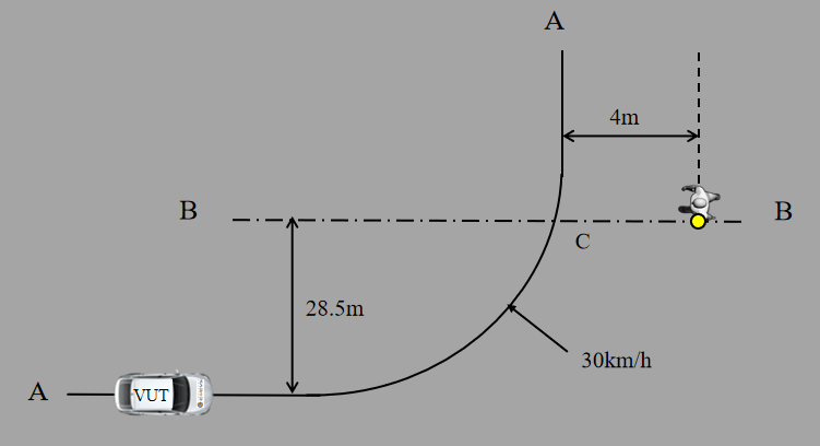 该场景主要考察车辆系统在左转弯过程中,对近端穿行行人的识别及响应能力。