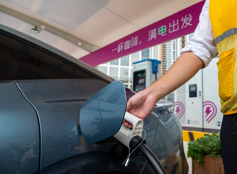 (资料图片)在位于深圳巴士集团深康充电站内的超充站,工作人员为一辆新能源汽车插枪充电。新华社记者 徐嘉懿 摄