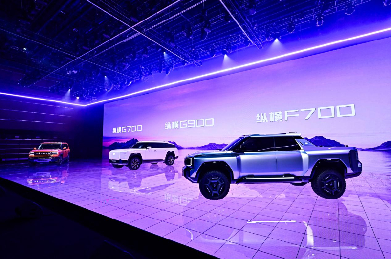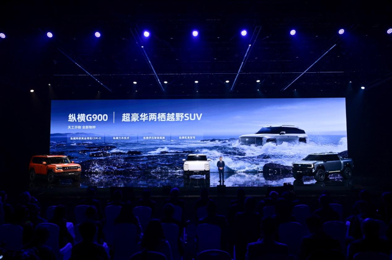 作为全地形豪华越野SUV,纵横G700搭载鲲鹏超能混动CDM-O系统,并采用非承载式车身,满足行遍山河万里的探险需求。纵横F700作为全地形豪华多功能皮卡,配备智能全地形模式,可轻松应对复杂路况。纵横G900作为超豪华两栖越野SUV,搭载纵横两栖黄金增程CEM-O系统,可真正实现“穿山越海”的全场景能力,为用户带来前所未有的越野体验。