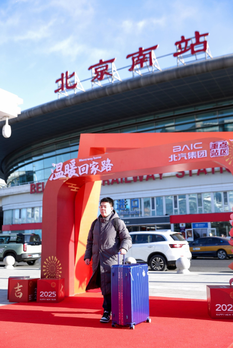 去年12月底,北汽集团即以北京站的一场“星光不问赶路人 致每一位努力生活的你”直播活动,开启了2025年春运“温暖回家路”大型公益行动。北汽集团志愿者变身“旅客身边人”,在北京站、北京西站、北京南站,围绕引导咨询、票务协助、文明乘车、关心关爱老幼病残孕等重点群体,为进出京旅客提供精准化、专业化的服务,并提供了数百件行李推车、儿童推车等免费共享单品。活动开展以来,北汽志愿者已经服务超1万人次,用真诚的服务赢得了旅客们的点赞。